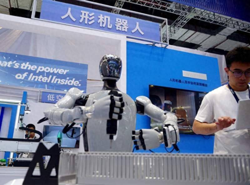 9月23日。以“工业新质兴泊证券,智造无界”为主题的第二十五届中国国际工业博览会当天在国家会展中心(上海)开幕。人形机器人在演示操作技艺。图/ic