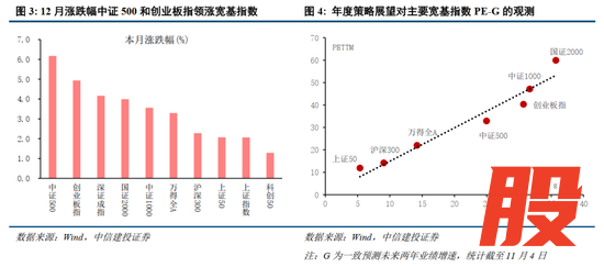 从风格主线来看:具有性价比优势的中证500和创业板指领涨市场,12月涨幅分别达到6.17%和4.93%。在11月上旬发布的2026年A股策略展望《慢牛新征程:博弈当下,布局未来》中,我们提示市场未来两大主线:科技成长和资源品,创业板指和中证500正是这两条主线的代表性指数。在与机构投资者的交流中,有观点认为有色和科技今年涨幅巨大,担心明年行情的持续性。事实上,如果考虑到未来两年业绩增长和指数当前估值水平,中证500和创业板指在主要宽基指数中反而是性价比最佳的选择,大盘价值和小微盘反而是估值偏贵的品种,在我们年度策略展望的PE-G图中对此有着清晰的反映。因此,12月中证500和创业板指领涨市场我们并不意外,这意味着市场行情正在沿着最具性价比的方向展开。