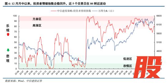 从我们构建并持续跟踪的投资者情绪指数来看:12月上旬万得全A维持横盘走势,但情绪指数仍在向下滑落,提示市场新一轮下跌风险。此后一些外部利空逐步显现,带动市场再次下跌,随着情绪指数在12月16日跌破70,市场开始企稳回升。