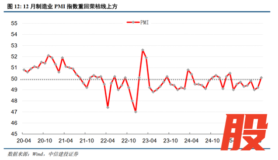 宏观经济预期回暖:2025年12月中国制造业PMI回升至50.1%,进入扩张区间;经济基本面改善强化市场对盈利复苏的信心,工业生产和制造业投资成为主要支撑。